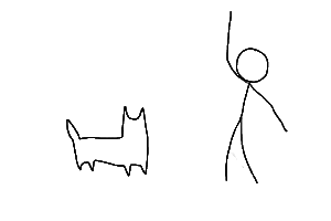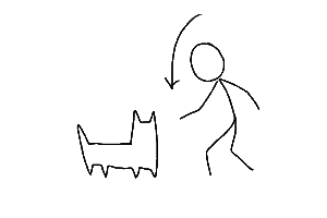 ③手を振り下ろし、犬の頭上で止める