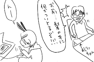 断れる訳ないのでぺろぺろ描いてたら先輩に「上手いねー。でもその絵どっかで見たことある…あー、ポップンみたいなんだ」と言われました。
